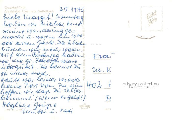 72920286 alte Postkarte Oberhof Thueringen Restaurant Forsthaus Sattelbach postalisch gelaufen Erhaltung siehe scans [LiesaD40] KatCode: 11110016066047