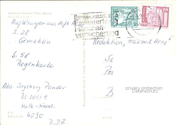 72394948 alte Postkarte Oberhof Thueringen Restaurant Oberhofer Hof postalisch gelaufen Erhaltung siehe scans KatCode: 11110016066047