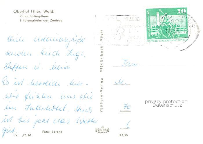72920292 alte Postkarte Oberhof Thueringen Richard-Eiling-Heim Erholungsheim der Zentrag postalisch gelaufen Erhaltung siehe scans [LiesaD40] KatCode: 11110016066047