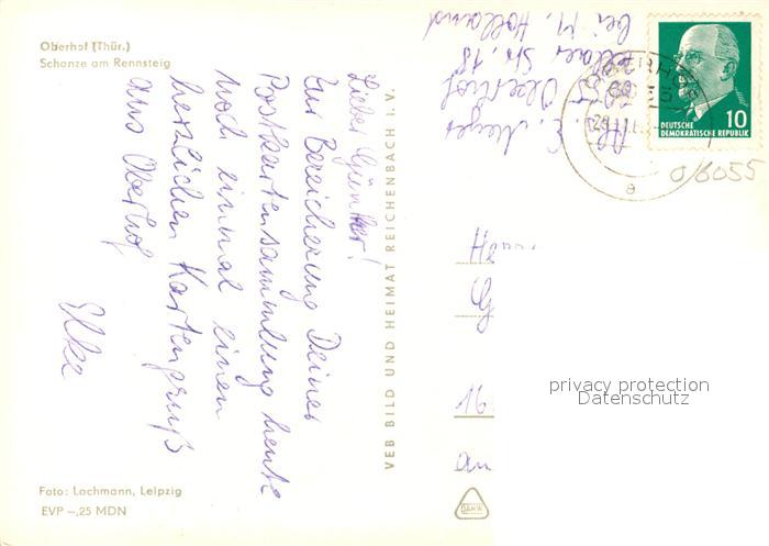 73071529 alte Postkarte Oberhof Thueringen Schanze am Rennsteig postalisch gelaufen Erhaltung siehe scans [WerneD78] KatCode: 11110016066047