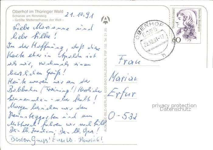 72443164 alte Postkarte Oberhof Thueringen Schanze am Rennsteig postalisch gelaufen Erhaltung siehe scans KatCode: 11110016066047