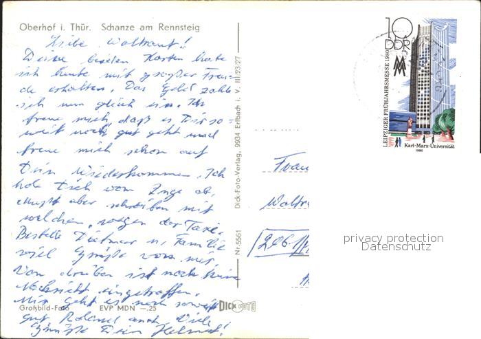 72136389 alte Postkarte Oberhof Thueringen Schanze am Rennsteig postalisch gelaufen Erhaltung siehe scans KatCode: 11110016066047
