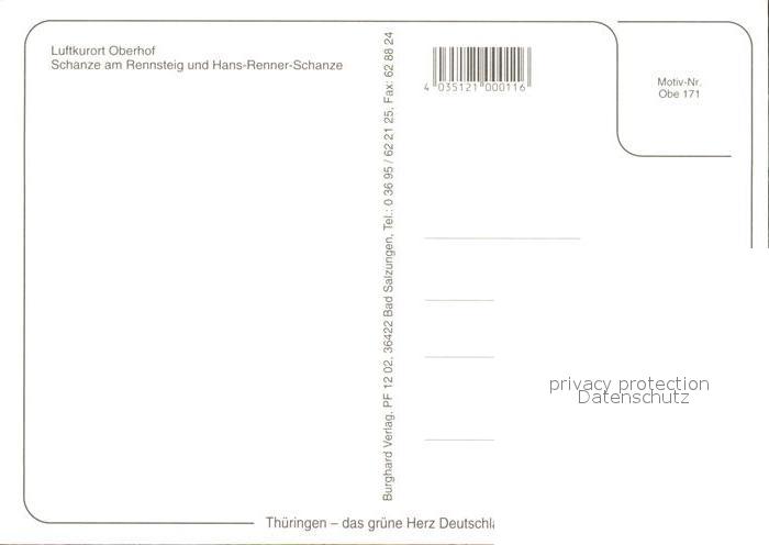 72591482 Oberhof Thueringen Schanze am Rennsteig mit Hans Renner Schanze postalisch nicht gelaufen Erhaltung siehe scans [WerneD78] KatCode: 11110016066047