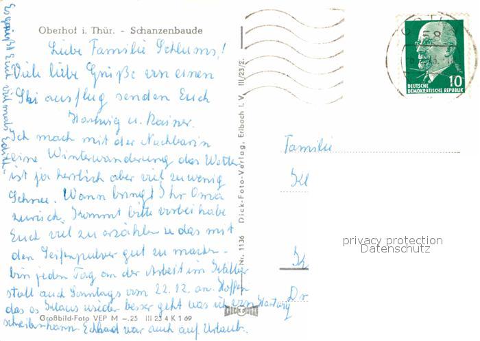 72831528 alte Postkarte Oberhof Thueringen Schanzenbaude postalisch gelaufen Erhaltung siehe scans [LiesaD40] KatCode: 11110016066047