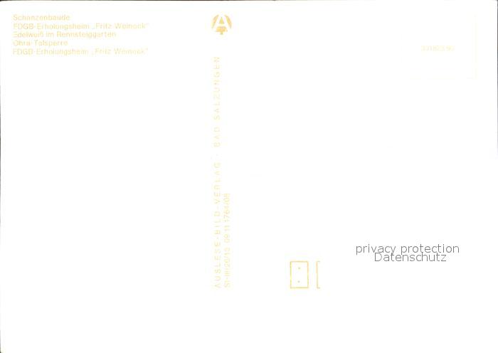 72334076 Oberhof Thueringen Schanzenbaude FDGB Erholungsheim Edelweiss Rennsteiggarten Ohra Talsperre postalisch nicht gelaufen Erhaltung siehe scans KatCode: 11110016066047
