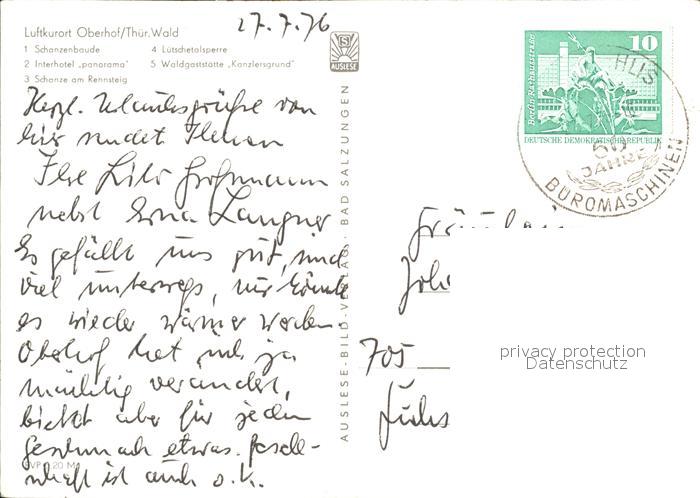 72406197 alte Postkarte Oberhof Thueringen Schanzenbaude Interhotel Panorama Schanze Rennsteig Luetschetalsperre Stausee Waldgaststaette Kanzlersgrund postalisch gelaufen Erhaltung siehe scans KatCode: 11110016066047
