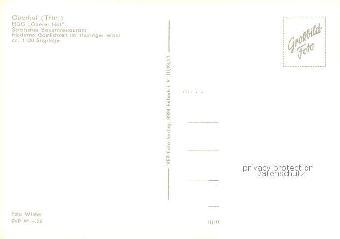 73335120 Oberhof Thueringen Serbisches Bauernrestaurant postalisch nicht gelaufen Erhaltung siehe scans [WerneD78] KatCode: 11110016066047