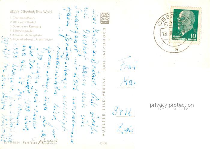 73061252 alte Postkarte Oberhof Thueringen Skisprungschanze Rennsteig Schanzenbaude Konsum Erholungsheim Jugendherberge postalisch gelaufen Erhaltung siehe scans [FriedD77] KatCode: 11110016066047