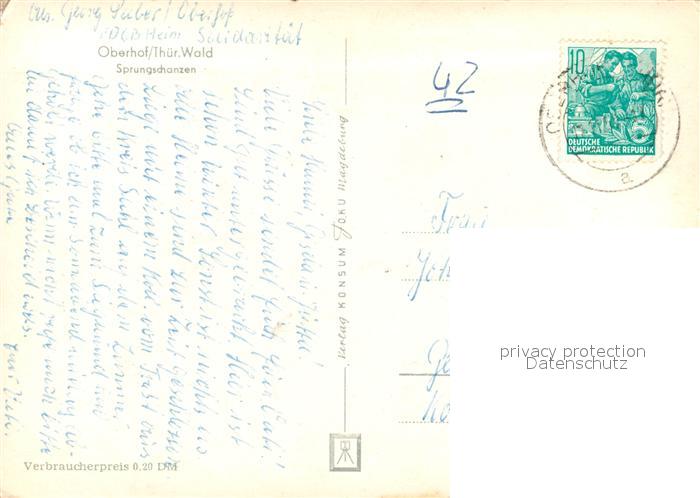 73116948 alte Postkarte Oberhof Thueringen Sprungschanzen postalisch gelaufen Erhaltung siehe scans [LiesaD40] KatCode: 11110016066047