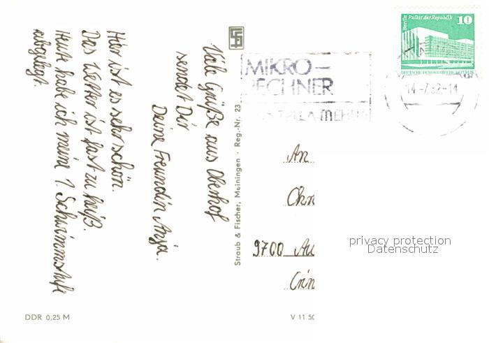 72728402 alte Postkarte Oberhof Thueringen Teilansicht Luetsche Wegweiser Hotel Ernst Thaelmann Haus der Freundschaft Bechertal postalisch gelaufen Erhaltung siehe scans [FriedD77] KatCode: 11110016066047
