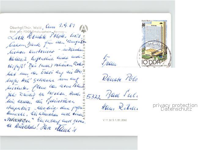71964652 alte Postkarte Oberhof Thueringen Teilansicht vom FDGB Erholungsheim Rennsteig postalisch gelaufen Erhaltung siehe scans KatCode: 11110016066047