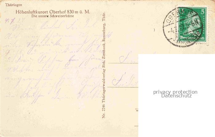 74031186 alte Postkarte Oberhof Thueringen Untere Schweizerhuette postalisch gelaufen Erhaltung siehe scans [FriedD77] KatCode: 11110016066047
