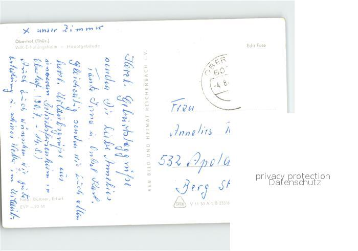 72201148 alte Postkarte Oberhof Thueringen VdK Erholungsheim Hauptgebaeude postalisch gelaufen Erhaltung siehe scans KatCode: 11110016066047