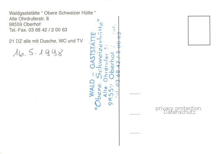 73803803 Oberhof Thueringen Waldgaststaette Obere Schweizer Huette postalisch nicht gelaufen Erhaltung siehe scans [WerneD78] Wern Katcode 11110016066047