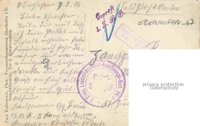 14121347 Oberhofen Oberhoffen-sur-Moder Alsace 67 Bas-Rhin Soldat Feldpost Pruefstempel postalisch gelaufen Erhaltung siehe scans [FriedD77] carte postale Frie Katcode 11170067267345
