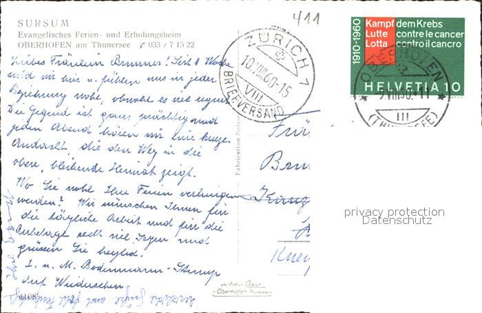 12057006 alte Postkarte Oberhofen Thunersee SURSUM Ferienheim postalisch gelaufen Erhaltung siehe scans KatCode: 11470060240778