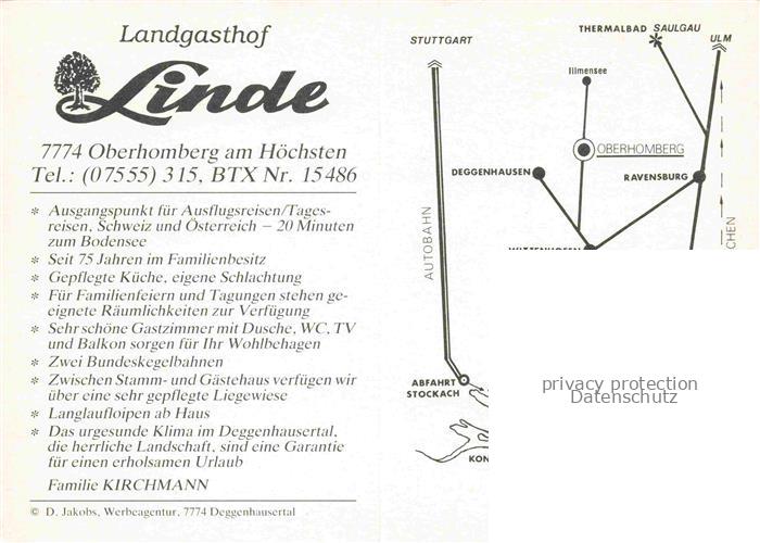 74104838 Oberhomberg Landgasthof Linde Gastraeume Terrasse postalisch nicht gelaufen Werbekarte (keine Postkarte) Erhaltung siehe scans [WerneD78] KatCode: 11110008435067