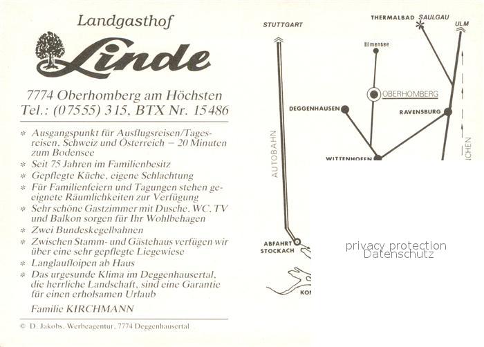 73661038 Oberhomberg Landgasthof Linde Restaurant postalisch nicht gelaufen Werbekarte (keine Postkarte) Erhaltung siehe scans [FriedD77] KatCode: 11110008435067