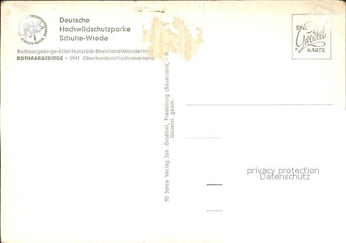 72288215 Oberhundem Deutsche Hochwildschutzparke Schulte- Wrede postalisch nicht gelaufen Erhaltung siehe scans KatCode: 11110005966016