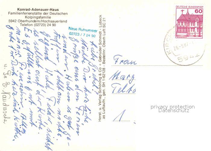 72825313 alte Postkarte Oberhundem Fliegeraufnahme Konrad Adenauer Haus postalisch gelaufen Erhaltung siehe scans [AndreD76] KatCode: 11110005966016