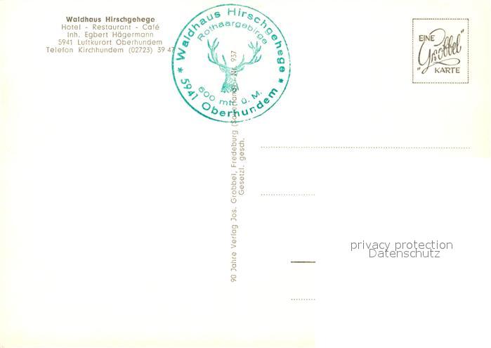 73017776 Oberhundem Hotel Waldhaus Restaurant Am Hirschfreigehege Rothaargebirge postalisch nicht gelaufen Erhaltung siehe scans [WerneD78] KatCode: 11110005966016