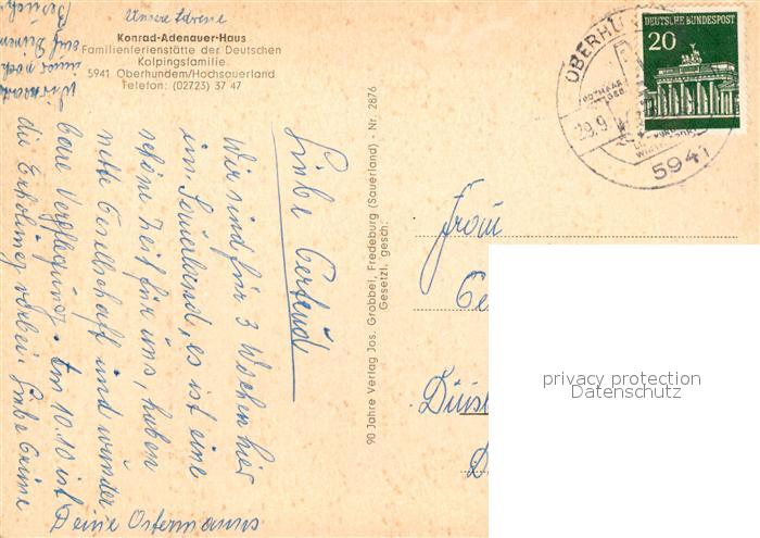 73310077 alte Postkarte Oberhundem Konrad Adenauer Haus Familienferienstaette Kolping postalisch gelaufen Erhaltung siehe scans [FriedD77] KatCode: 11110005966016
