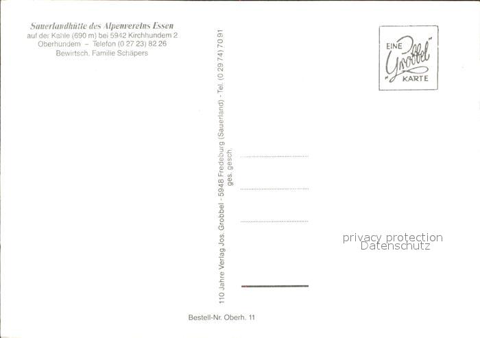 72008420 Oberhundem Lauerlandhuette des Alpenvereins Essen postalisch nicht gelaufen Erhaltung siehe scans KatCode: 11110005966016