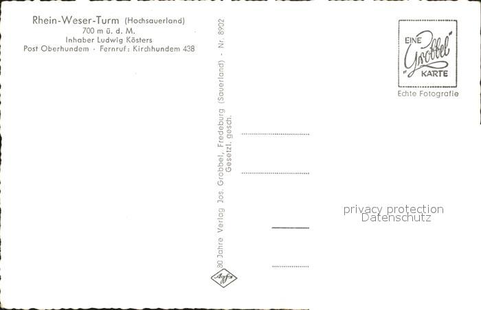 Oberhundem Rhei-Weser-Turm Adolfsburg postalisch nicht gelaufen Erhaltung siehe scans