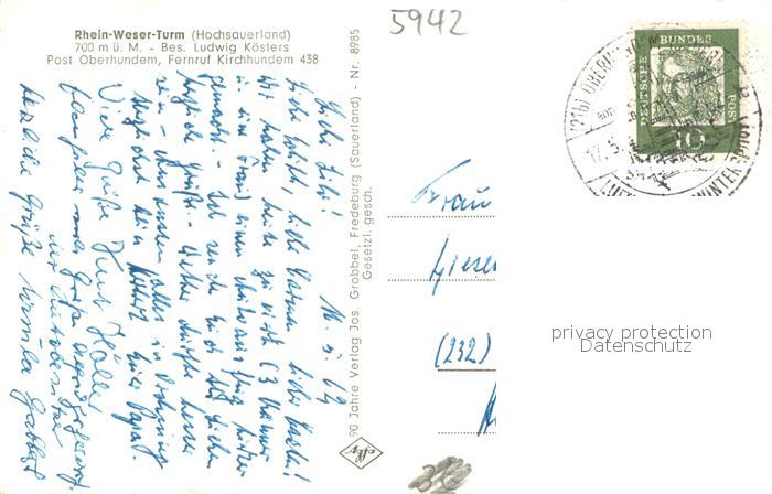 73700822 alte Postkarte Oberhundem Rhein Weser Turm Landschaftspanorama postalisch gelaufen Erhaltung siehe scans [FriedD77] KatCode: 11110005966016