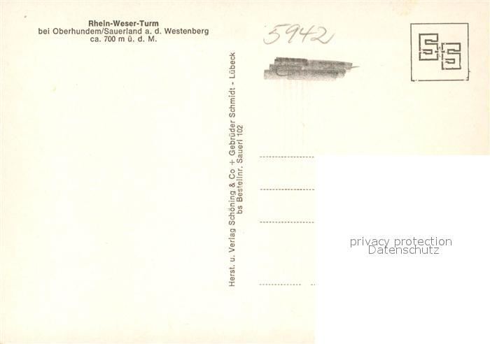 73050844 Oberhundem Rhein Weser Turm postalisch nicht gelaufen Erhaltung siehe scans [KathaD81] KatCode: 11110005966016