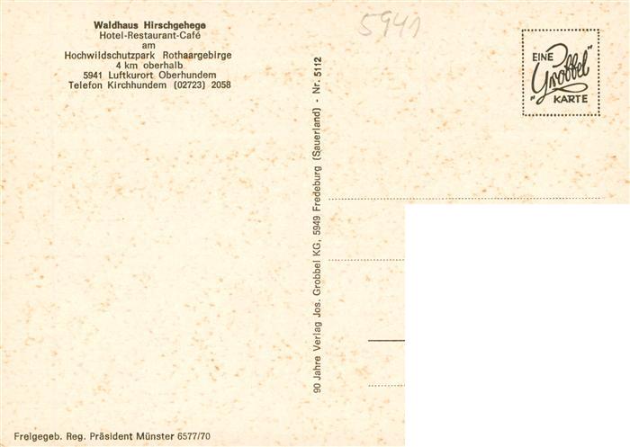 73894264 Oberhundem Waldhaus Hirschgehege Hotel Restaurant Cafe Hochwildschutzpark Rothaargebirge postalisch nicht gelaufen Fliegeraufnahme Erhaltung siehe scans [FriedD77] KatCode: 11110005966016