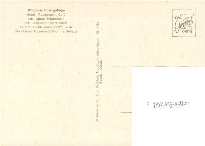 73780134 Oberhundem Waldhaus Hirschgehege Hotel Restaurant Cafe postalisch nicht gelaufen Erhaltung siehe scans [FriedD77] KatCode: 11110005966016