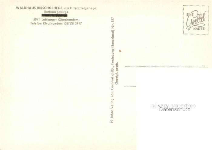 73543040 Oberhundem Waldhaus Hirschgehege Restaurant im Rothaargebirge postalisch nicht gelaufen Erhaltung siehe scans [FriedD77] KatCode: 11110005966016