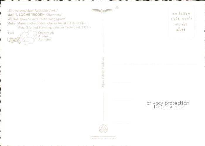 72483676 Oberinntal Maria Locherboden Wallfahrtskirche mit Moetz Silz Haiming Tschirgant Fliegeraufnahme postalisch nicht gelaufen Erhaltung siehe scans KatCode: 11390