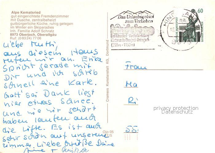 73172510 alte Postkarte Oberjoch Alpe Kematsried postalisch gelaufen Erhaltung siehe scans [NatalD47] KatCode: 11110009780123
