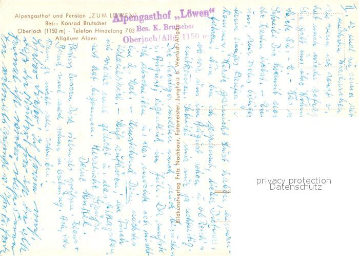 73641216 Oberjoch Alpengasthof Pension Zum Loewen postalisch nicht gelaufen Erhaltung siehe scans [WerneD78] KatCode: 11110009780123