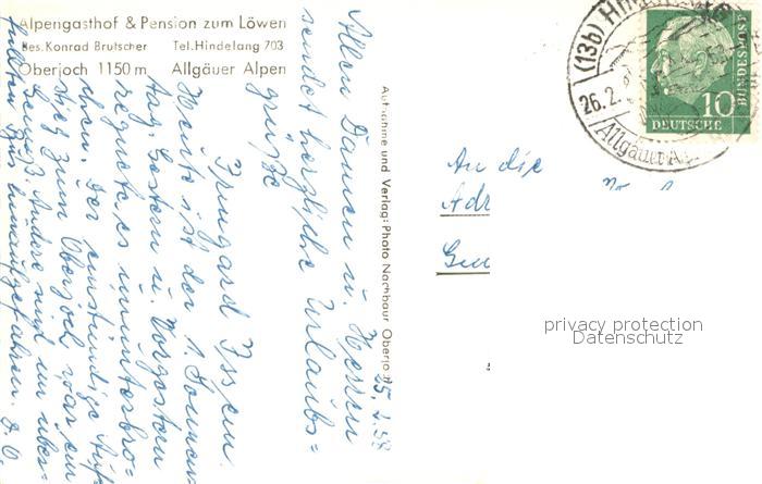 73641007 alte Postkarte Oberjoch Alpengasthof Pension zum Loewen postalisch gelaufen Erhaltung siehe scans [WerneD78] KatCode: 11110009780123