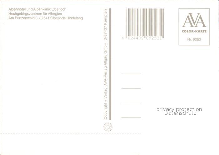 Oberjoch Alpenhotel Alpenklinik Hochgebirgszentrum fuer Allergien Restaurant postalisch nicht gelaufen Erhaltung siehe scans
