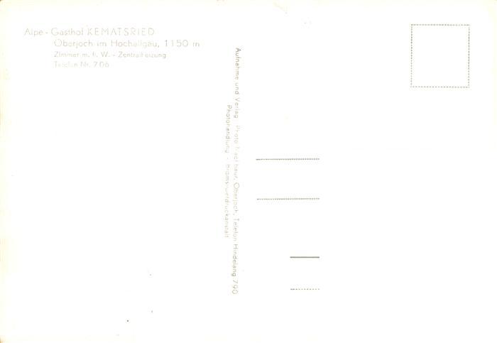 73892794 Oberjoch Bad Hindelang Alp Gasthof Kematsried postalisch nicht gelaufen Erhaltung siehe scans [FriedD77] KatCode: 11110009780123