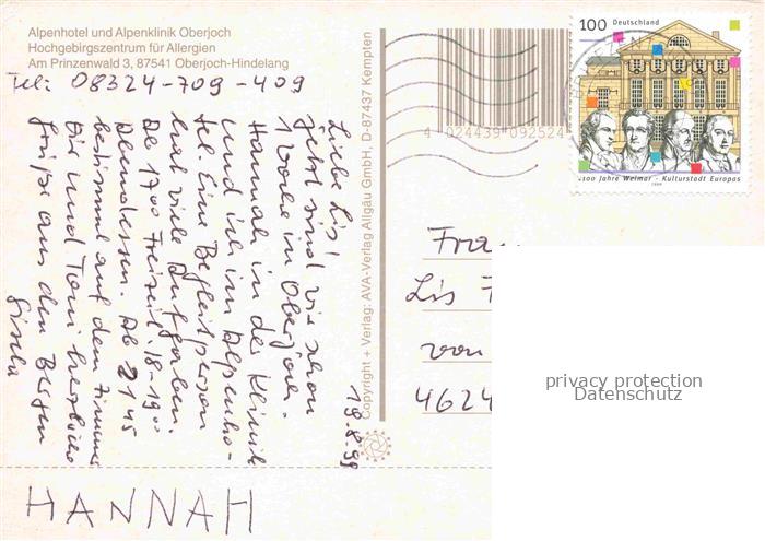74044749 alte Postkarte Oberjoch Bad Hindelang Alpenhotel und Alpenklinik Oberjoch Hallenbad postalisch gelaufen Erhaltung siehe scans [WerneD78] KatCode: 11110009780123