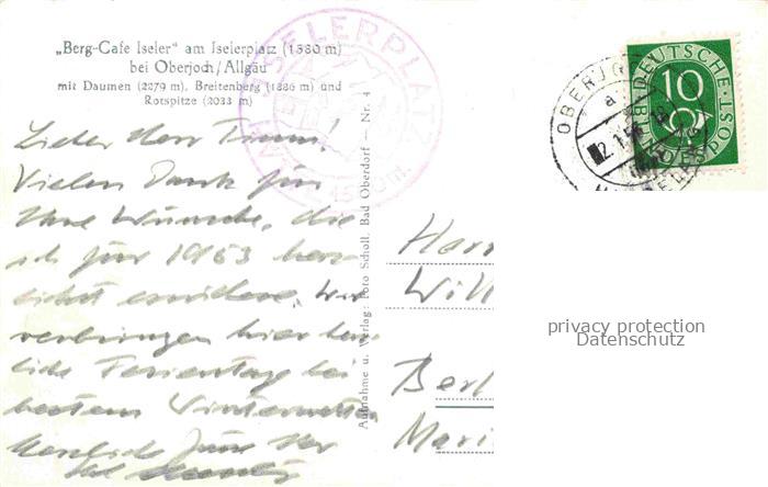 74035541 alte Postkarte Oberjoch Bad Hindelang Bergcafé Iseler am Iselerplatz Winterpanorama mit Daumen Breitenberg Rotspitze Allgaeuer Alpen postalisch gelaufen Erhaltung siehe scans [FriedD77] KatCode: 11110009780123