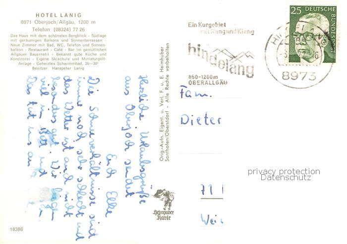 73836238 alte Postkarte Oberjoch Bad Hindelang Hotel Lanig Cafe Restaurant Sonnenterrasse Schwimmbad postalisch gelaufen Erhaltung siehe scans [WerneD78] KatCode: 11110009780123