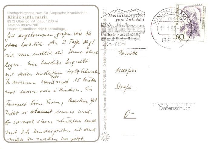 73865572 alte Postkarte Oberjoch Bad Hindelang Klinik Santa Maria Winterlandschaft Allgaeuer Alpen postalisch gelaufen Erhaltung siehe scans [FriedD77] KatCode: 11110009780123