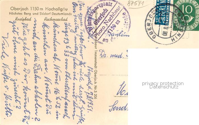 73763369 alte Postkarte Oberjoch Bad Oberdorf m. Pass-Strasse postalisch gelaufen Erhaltung siehe scans [LiesaD40] KatCode: 11110009780123