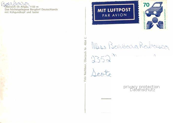 72798739 Oberjoch Bergdorf mit Kuehgundkopf und Iseler Allgaeuer Alpen Fliegeraufnahme postalisch nicht gelaufen Erhaltung siehe scans [FriedD77] KatCode: 11110009780123