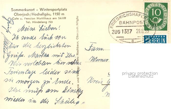73107824 alte Postkarte Oberjoch Cafe Pension Mattlihaus am Skilift postalisch gelaufen Bahnpost Erhaltung siehe scans [WerneD78] KatCode: 11110009780123