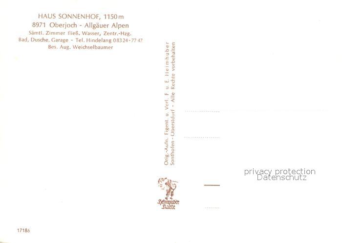 73652917 Oberjoch Gaestehaus Pension Sonnenhof Gastraum Garten Fremdenzimmer Allgaeuer Alpen postalisch nicht gelaufen Erhaltung siehe scans [FriedD77] KatCode: 11110009780123