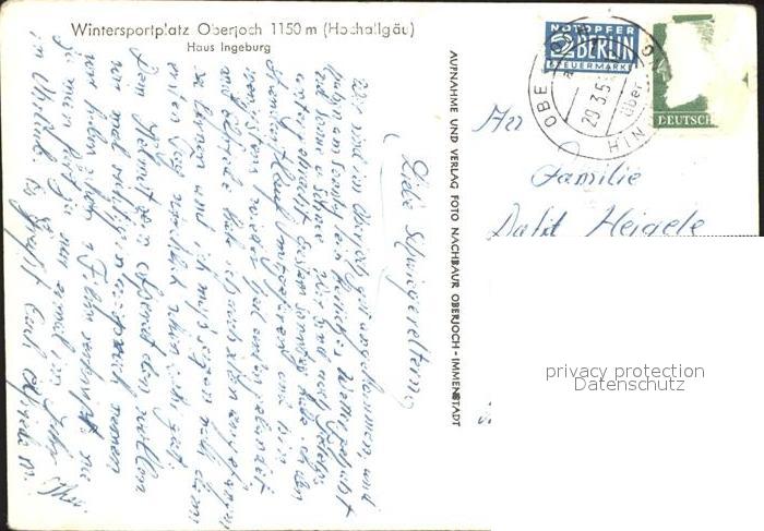 72088365 alte Postkarte Oberjoch Haus Ingeburg postalisch gelaufen Erhaltung siehe scans KatCode: 11110009780123