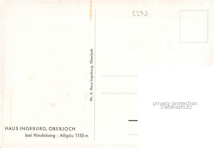 42964168 Oberjoch Haus Ingeburg postalisch nicht gelaufen Erhaltung siehe scans [AndreD76] KatCode: 11110009780123