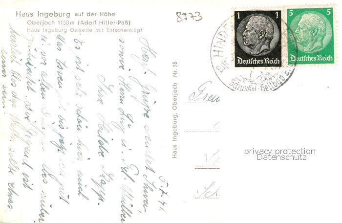 42958796 alte Postkarte Oberjoch Haus Ingeburg A.-H. Pass Oberallgaeu postalisch gelaufen Erhaltung siehe scans [Chrisger] KatCode: 11110009780123